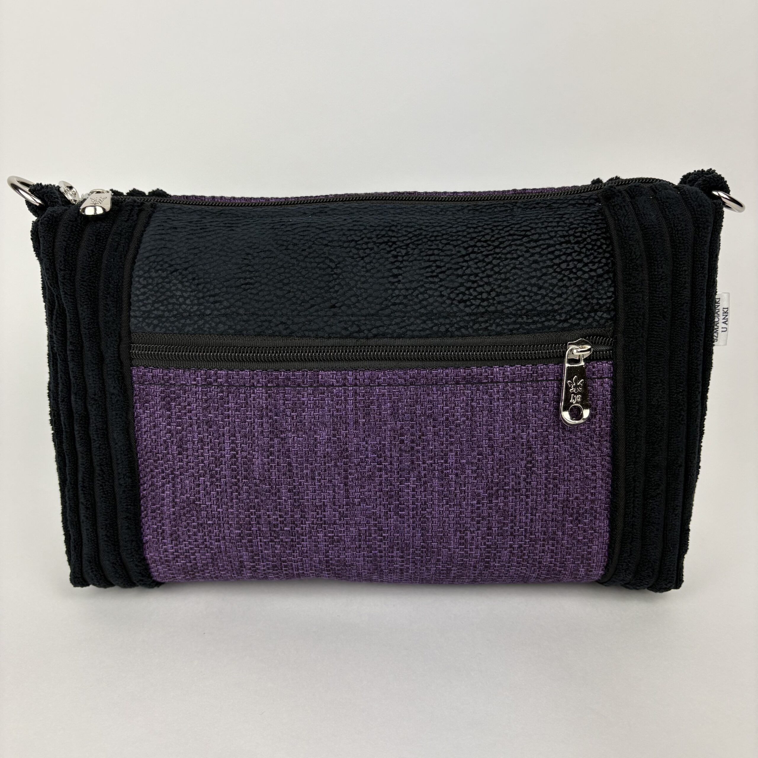 – z zewnątrz kieszonka zapinana na zamek, z drugiej strony otwarta kieszeń