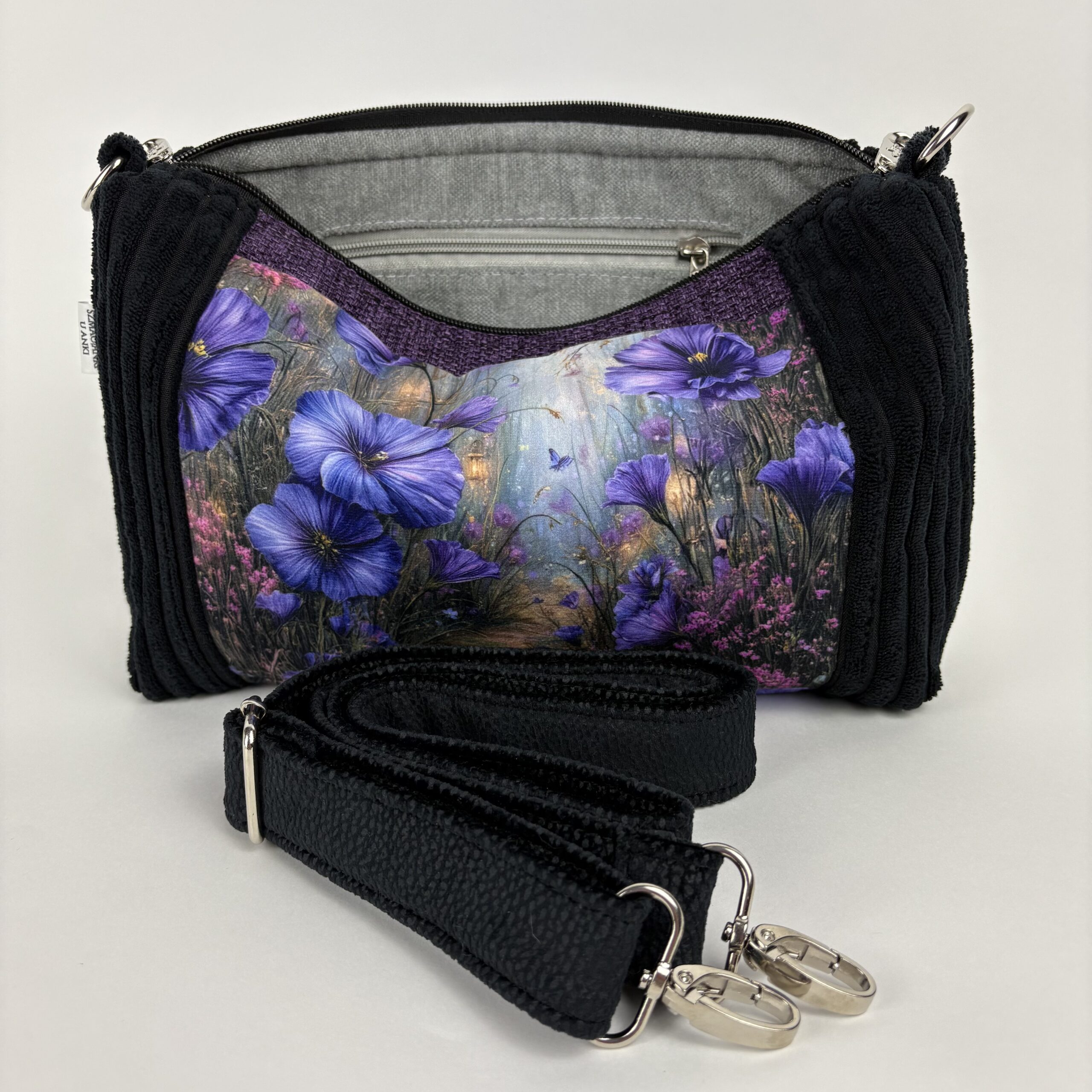 Strona główna / Torebki / Halinka / Halinka czarno - fioletowa z kwiatami