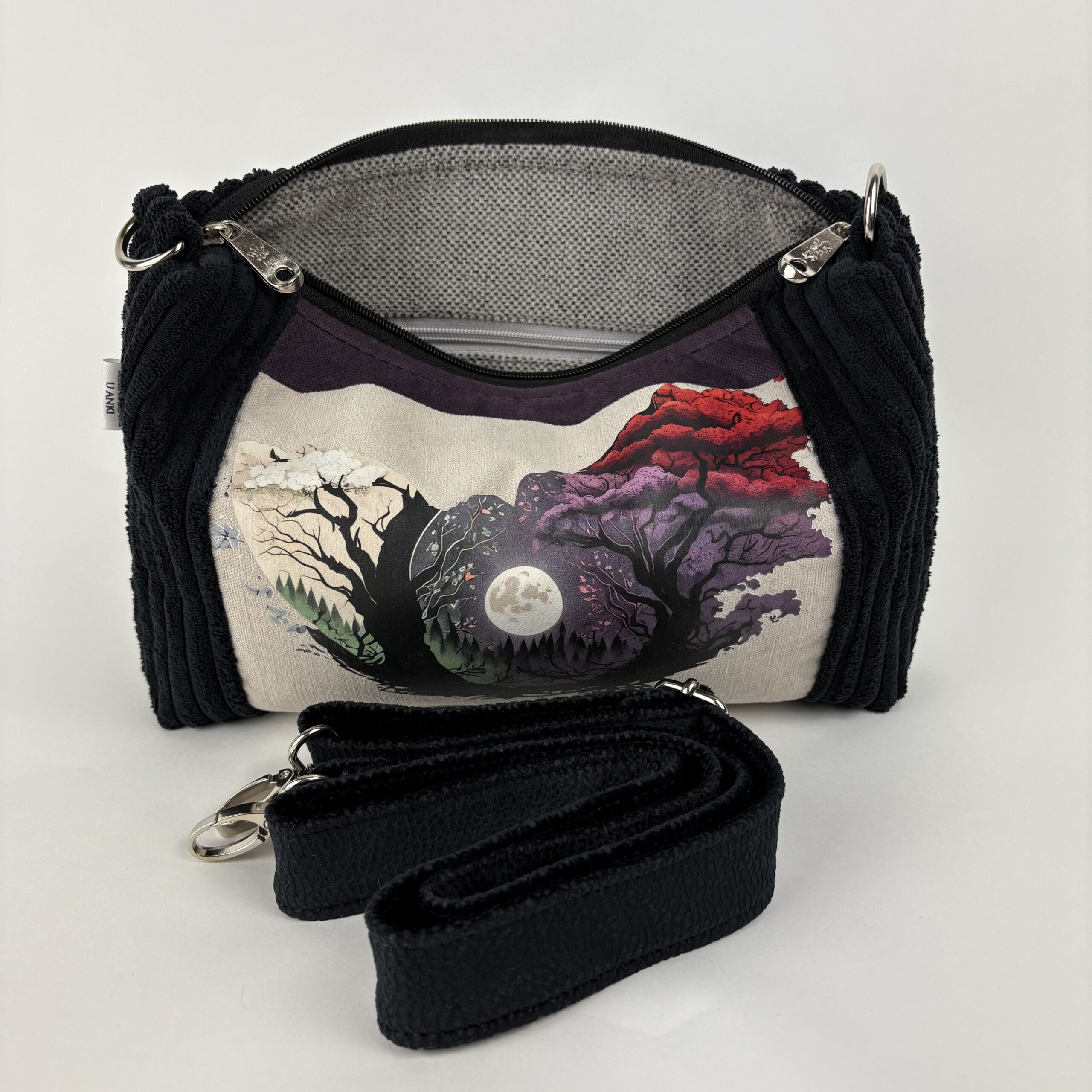Klasyczna, upcyklingowa i praktyczna – taka właśnie jest Halinka. Jej przemyślana forma sprawia, że idealnie sprawdzi się zarówno na co dzień, jak i na wyjątkowe okazje. Posiada regulowany welurowy pasek.