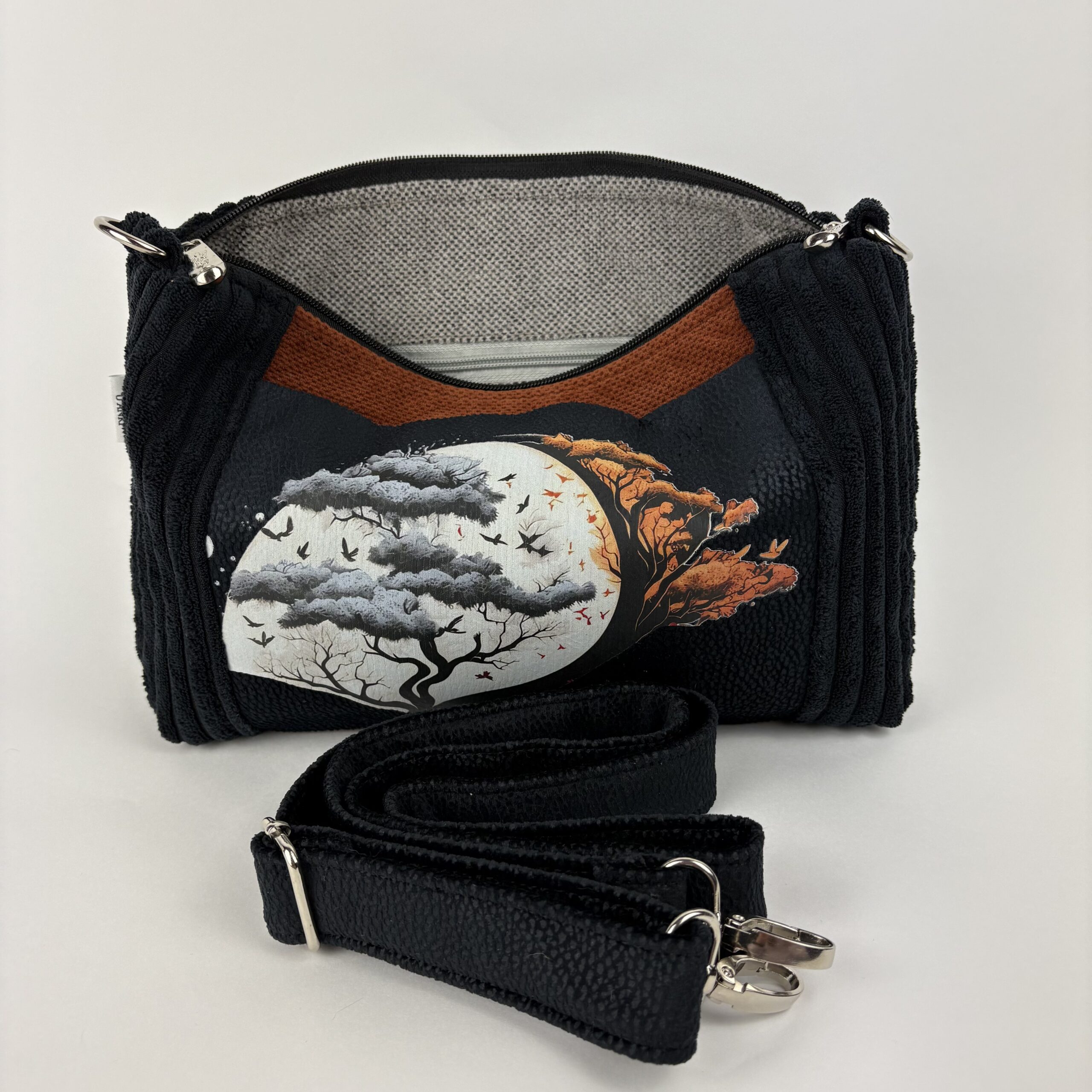 Klasyczna, upcyklingowa i praktyczna – taka właśnie jest Halinka. Jej przemyślana forma sprawia, że idealnie sprawdzi się zarówno na co dzień, jak i na wyjątkowe okazje. Posiada regulowany welurowy pasek.