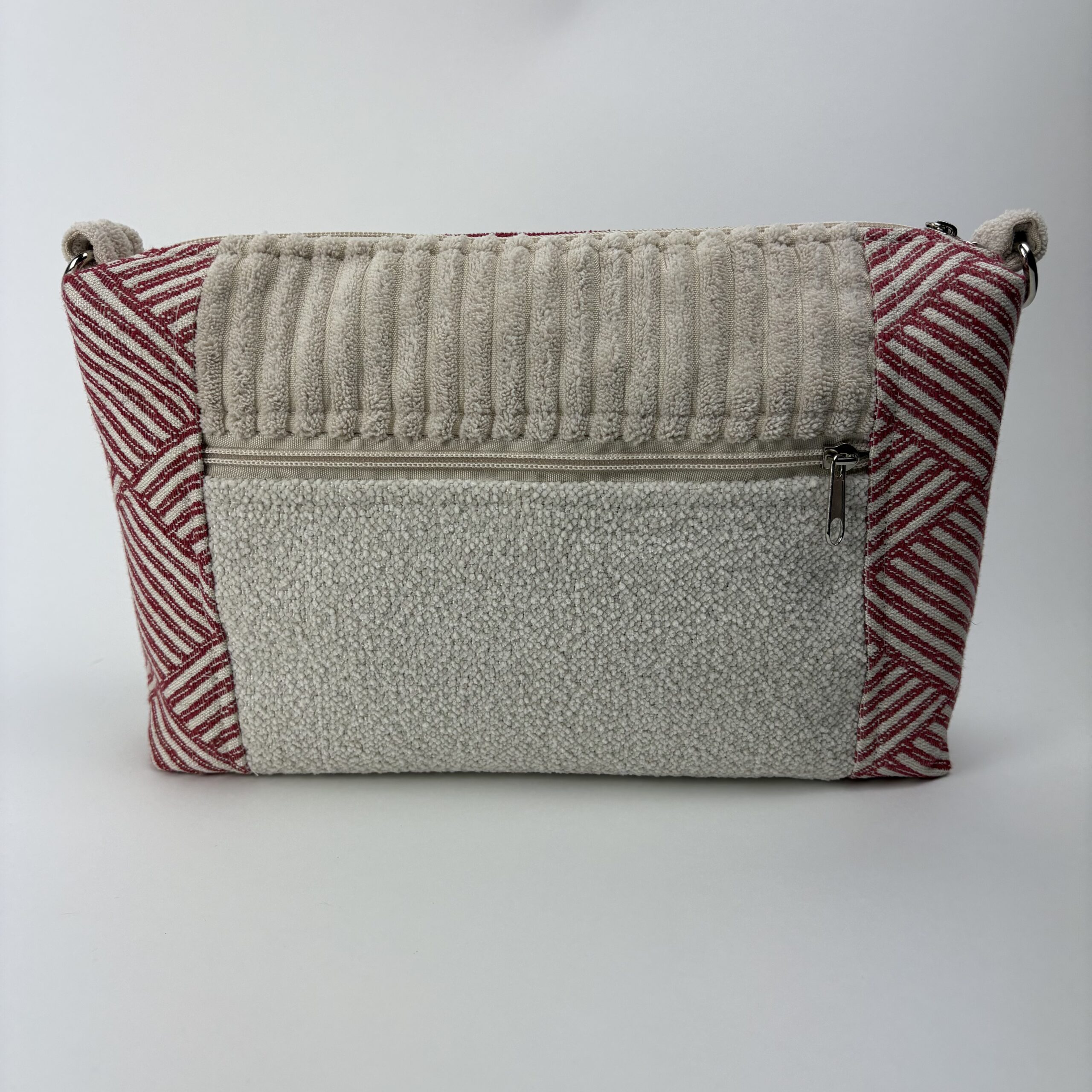 – z zewnątrz kieszonka zapinana na zamek, z drugiej strony otwarta kieszeń