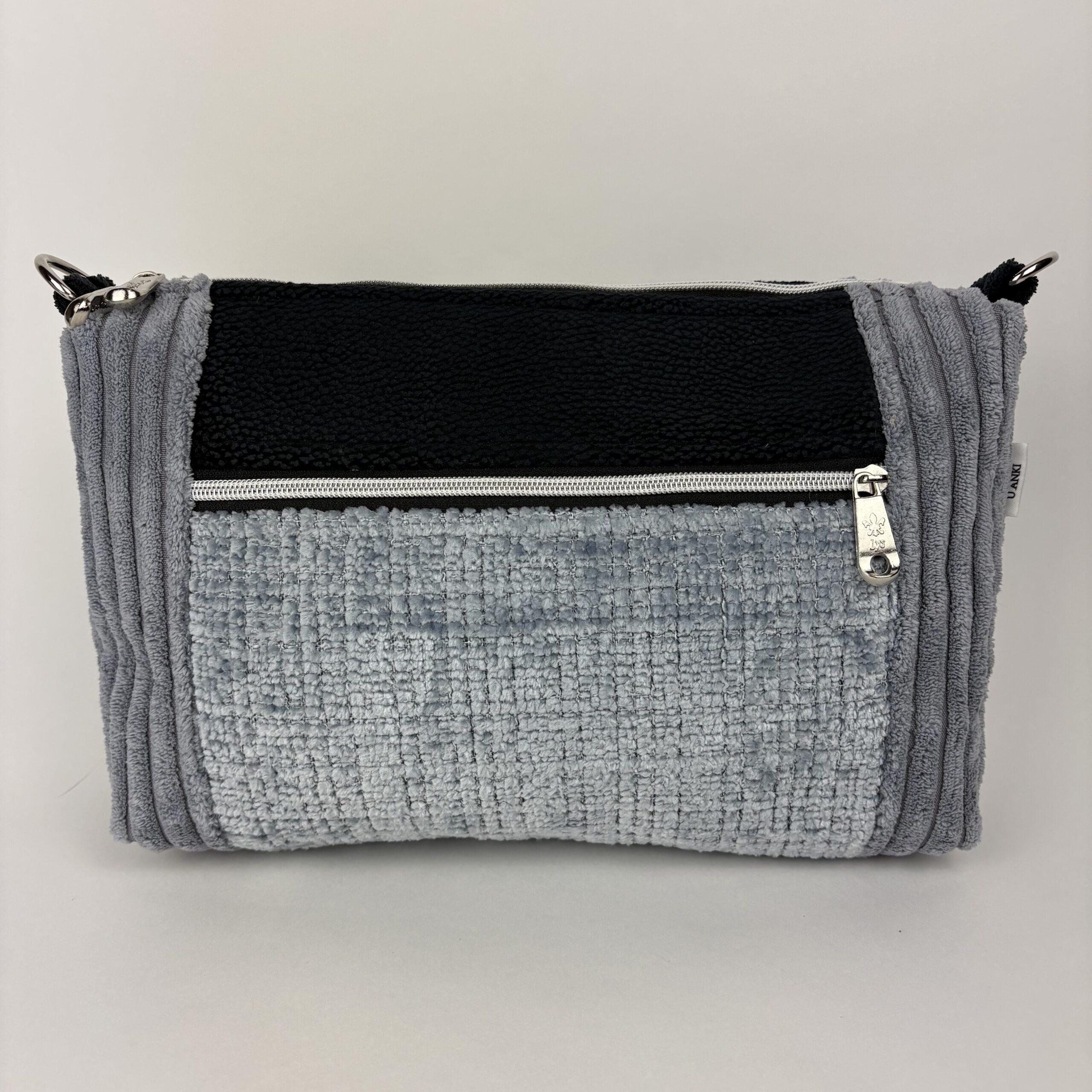– z zewnątrz kieszonka zapinana na zamek, z drugiej strony otwarta kieszeń